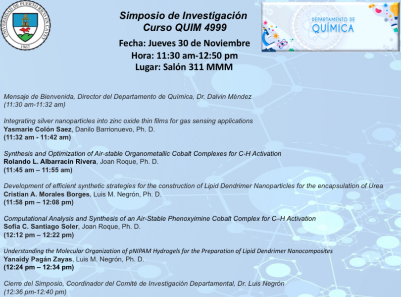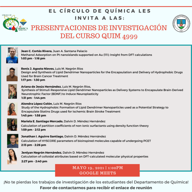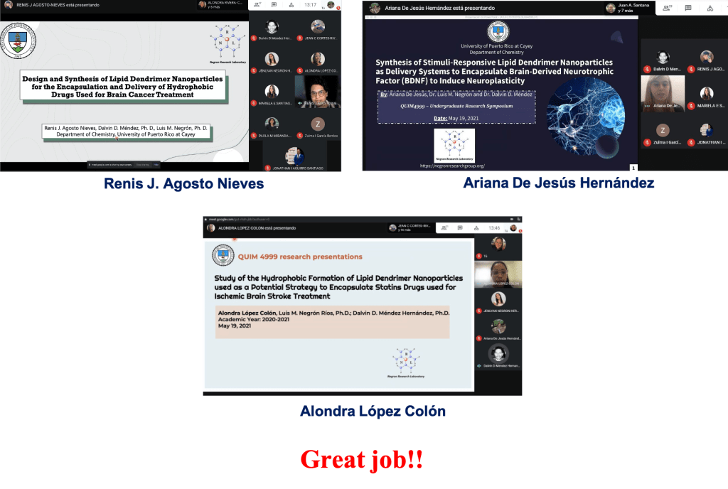 Congratulations to Ariana, Alondra and all chemistry students that presented their progress reports at the Undergraduate Research Virtual Symposium of the University of Puerto Rico at Cayey.