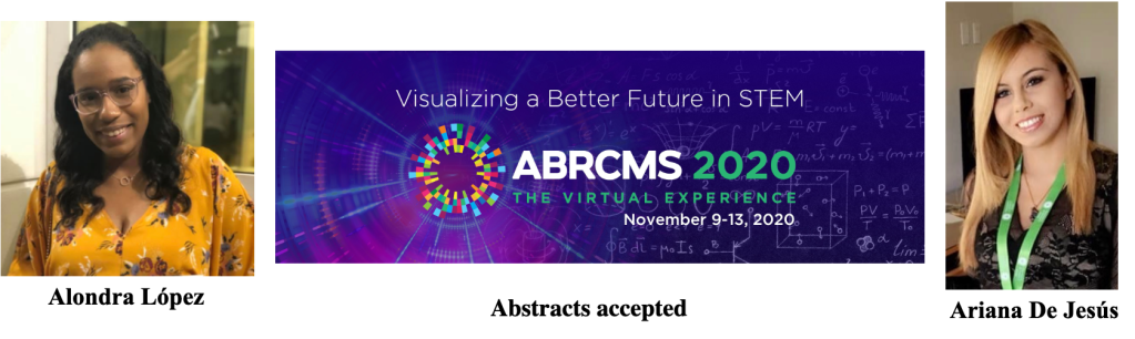 Alondra and Ariana, current research assistants, got accepted to the Annual Biomedical Research Conference for Minority Students 2020 (ABRCMS 2020) to present their research projects.