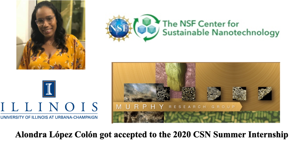 Alondra got accepted to the Center for Sustainable Nanotechnology’s Summer Undergraduate Research Experience at the University of Illinois Urbana Champaign. She will work at the Dr. Catherine Murphy’s Research Laboratory. Congratulations for this great achievement!
