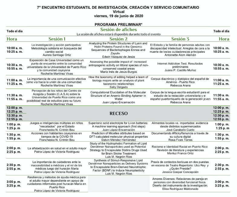 • 8th Student Meeting of Research, Creations, and Community Service of the University of Puerto Rico at Cayey