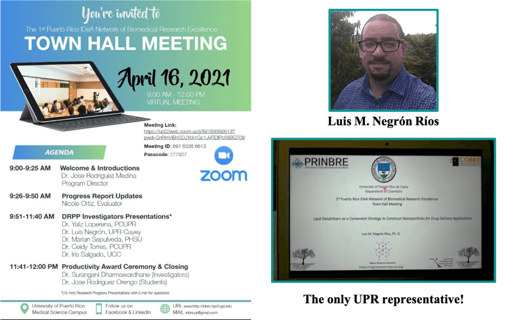 Congratulations to Dr. Negrón on his outstanding virtual research presentation at the first Puerto Rico IDeA Network of Biomedical Research Excellence Town Hall Meeting!!!