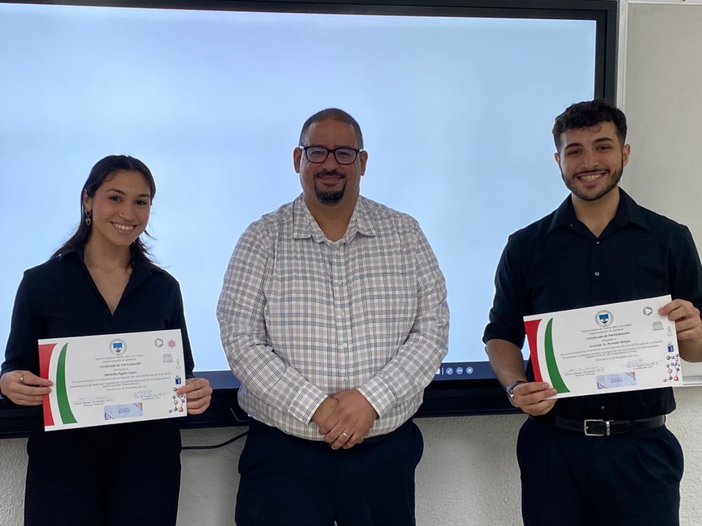 We are pleased to highlight the participation of our undergraduate researcher, Waldemar A. Rivera Burgos, from the Department of Chemistry at the University of Puerto Rico at Cayey, in the 43rd Puerto Rico Interdisciplinary Scientific Meeting (PRISM) and the 58th ACS Junior Technical Meeting.