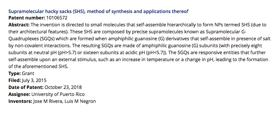 Patents Click here to view Puerto Rico Science, Technology & Research Trust Click here to view: Justia Patents uspto patent full-text and image database Share this: Share on X (Opens in new window) X Share on Facebook (Opens in new window) Facebook Like Loading...