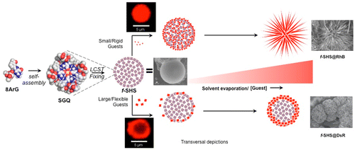 Nanoflowers (NFs) are flowered-shaped particles with overall sizes or features in the nanoscale. Beyond their pleasing aesthetics, NFs have found a number of applications ranging from catalysis, to sensing, to drug delivery. Compared to inorganic based NFs, their organic and hybrid counterparts are relatively underdeveloped mostly because of the lack of a reliable and versatile method for their construction. We report here a method for constructing NFs from a wide variety of biologically relevant molecules (guests), ranging from small molecules, like doxorubicin, to biomacromolecules, like various proteins and plasmid DNA. The method relies on the encapsulation of the guests within a hierarchically structured particle made from supramolecular G-quadruplexes. The size and overall flexibility of the guests dictate the broad morphological features of the resulting NFs, specifically, small and rigid guests favor the formation of NFs with spiky petals, while large and/or flexible guests promote NFs with wide petals. The results from experiments using confocal fluorescence microscopy, and scanning electron microscopy provides the basis for the proposed mechanism for the NF formation.
